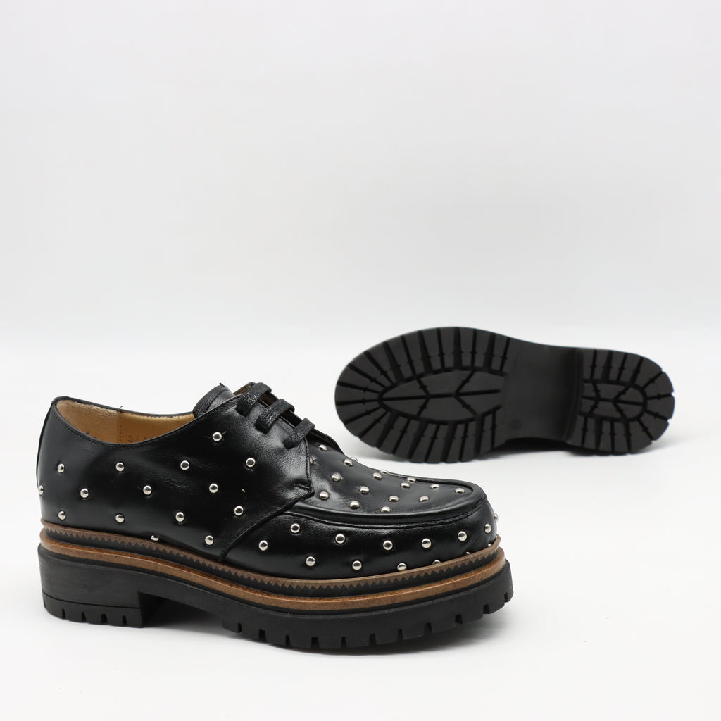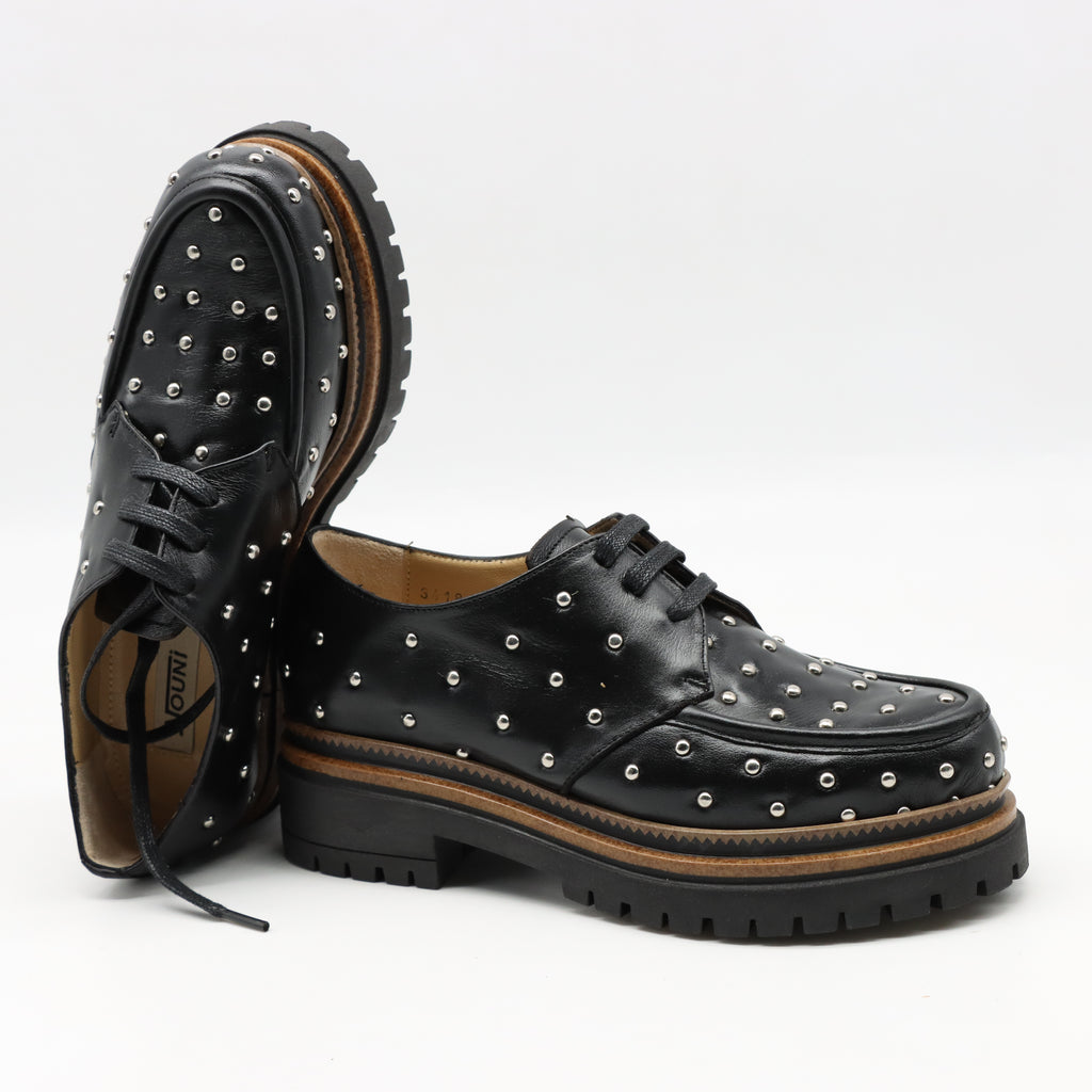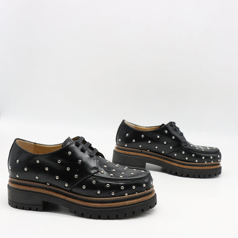 CHAUSSURES EN CUIR À STRASS CLOUS ET SEMELLE CRANTÉE