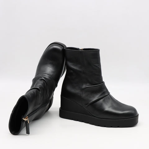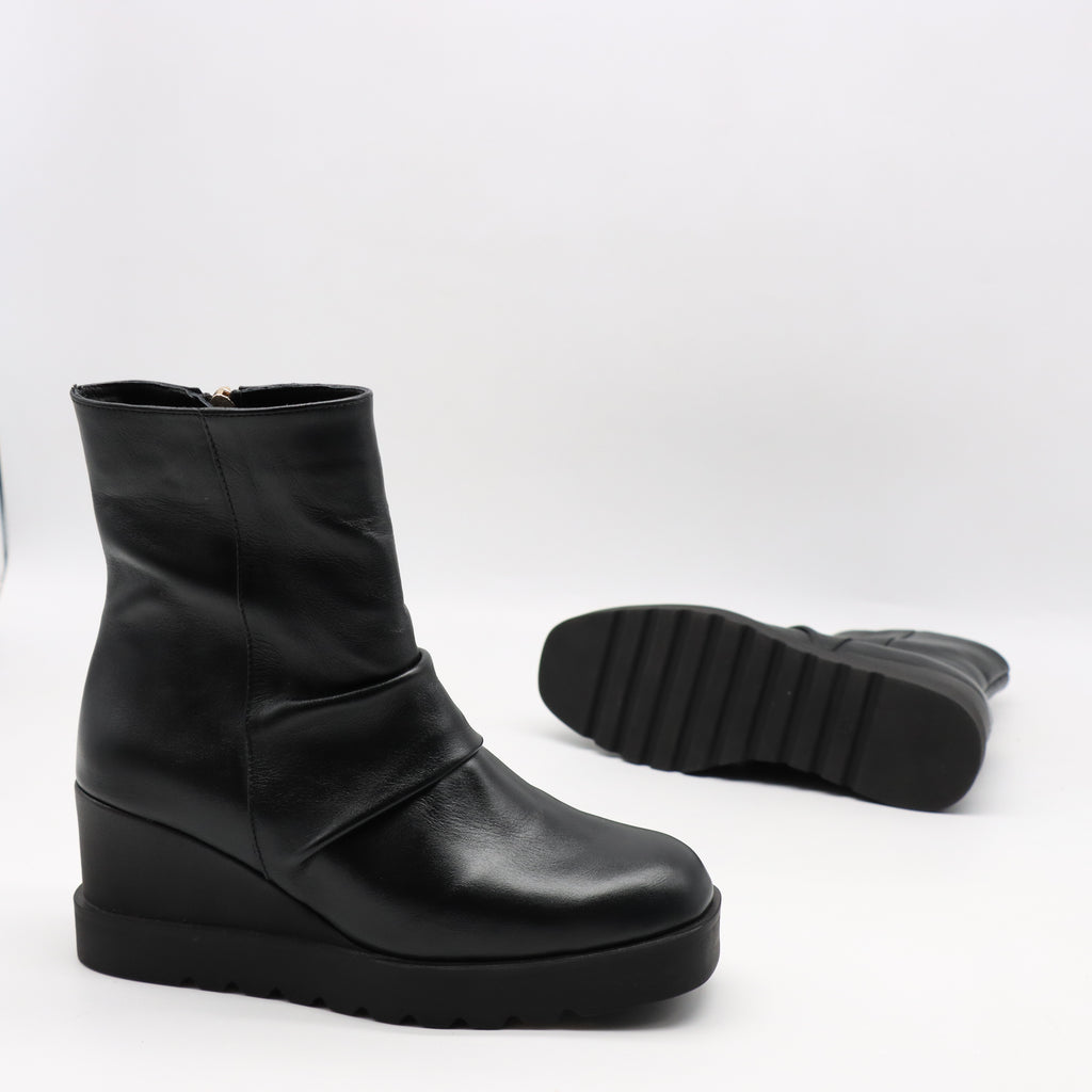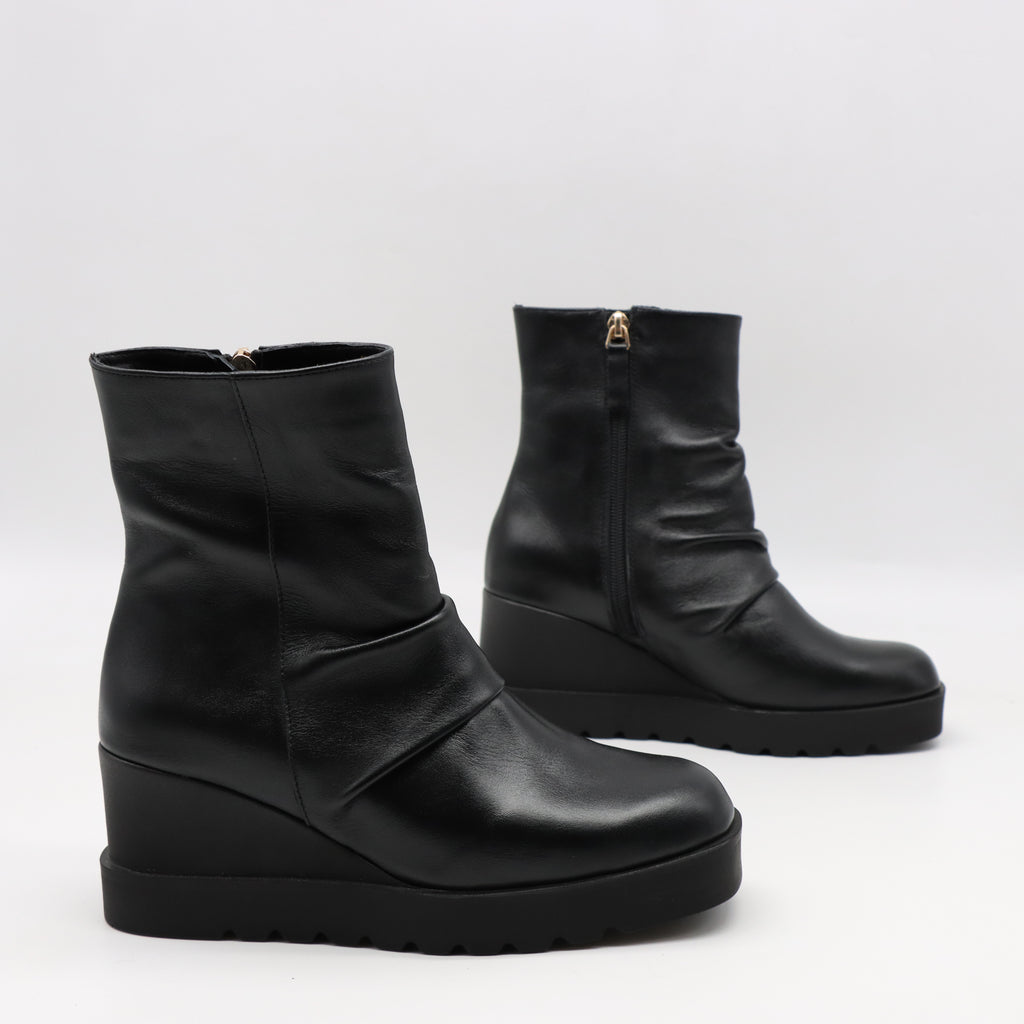 BOTTINES COMPENSÉES PLISSÉES EN CUIR
