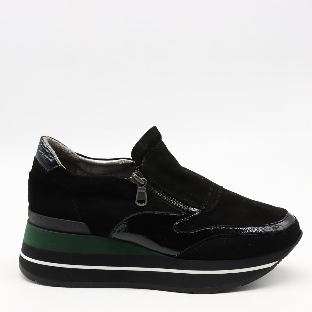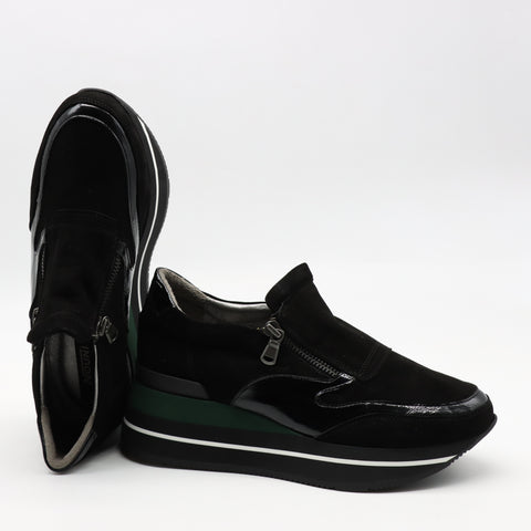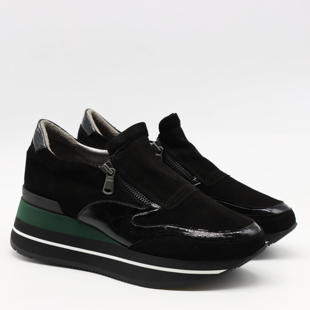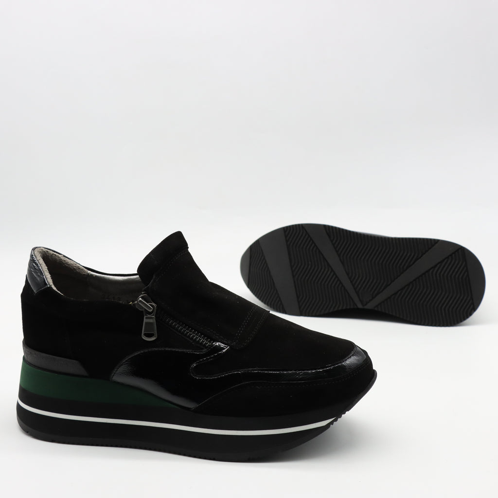 BASKETS À FERMETURE EN DAIM CUIR ET SEMELLE COMPENSÉES