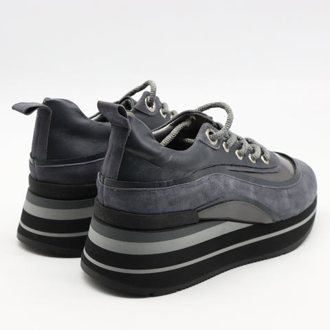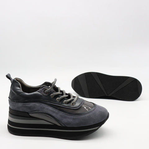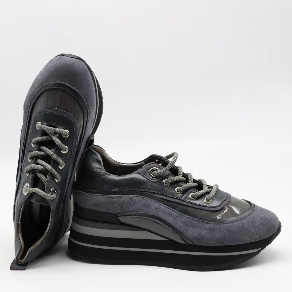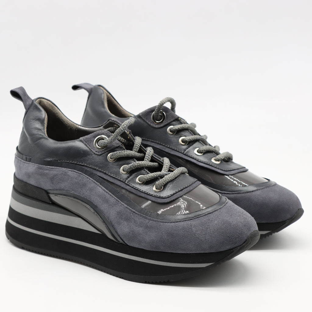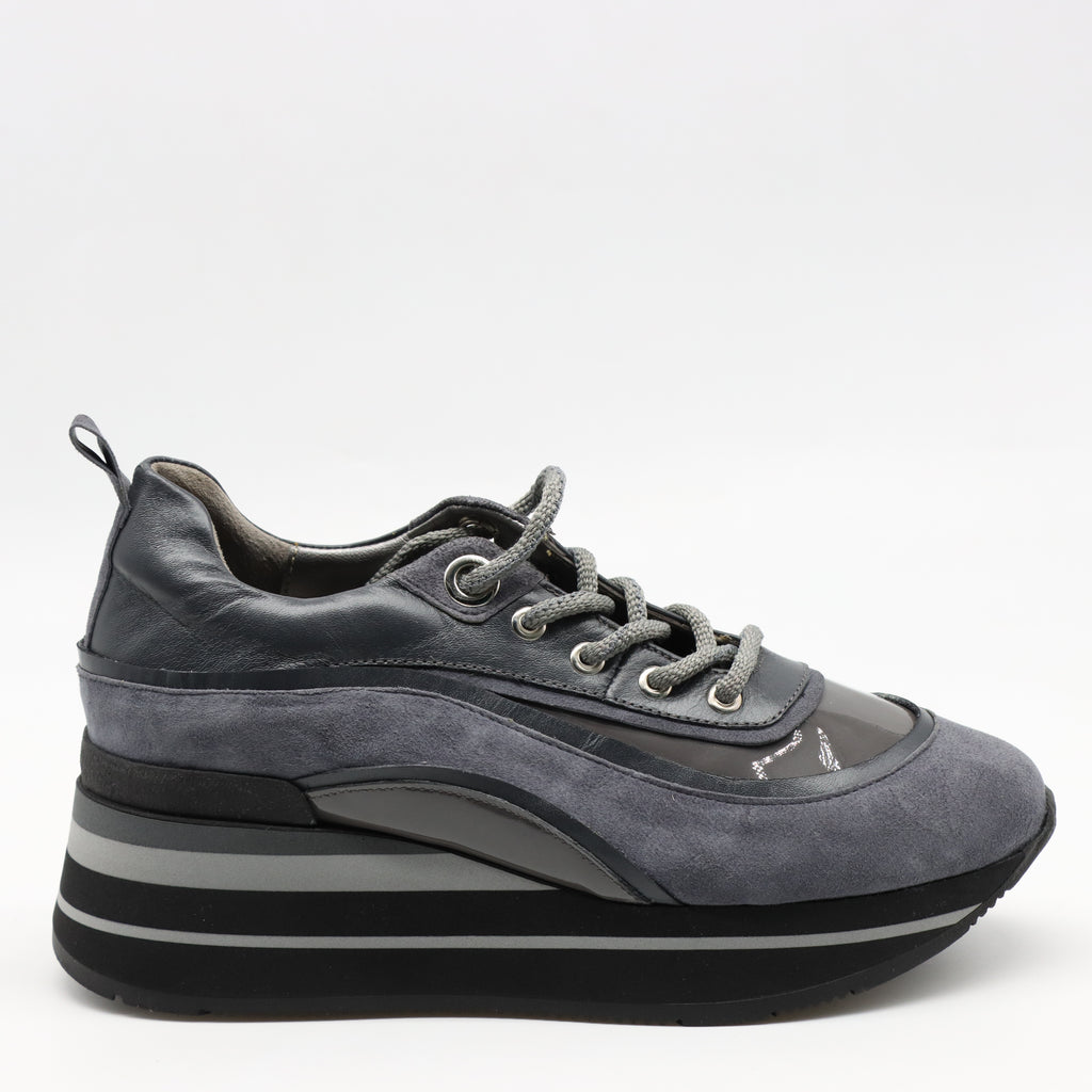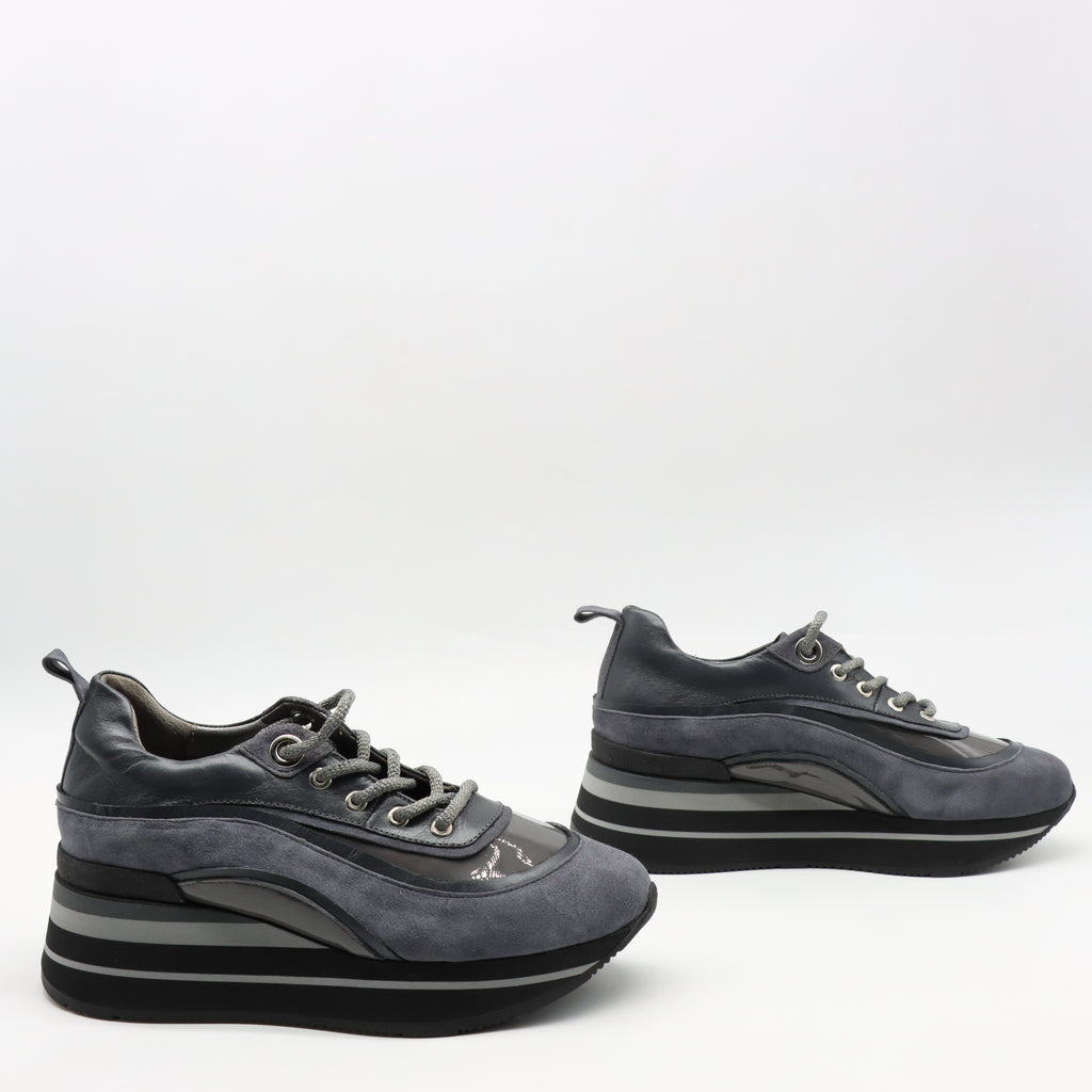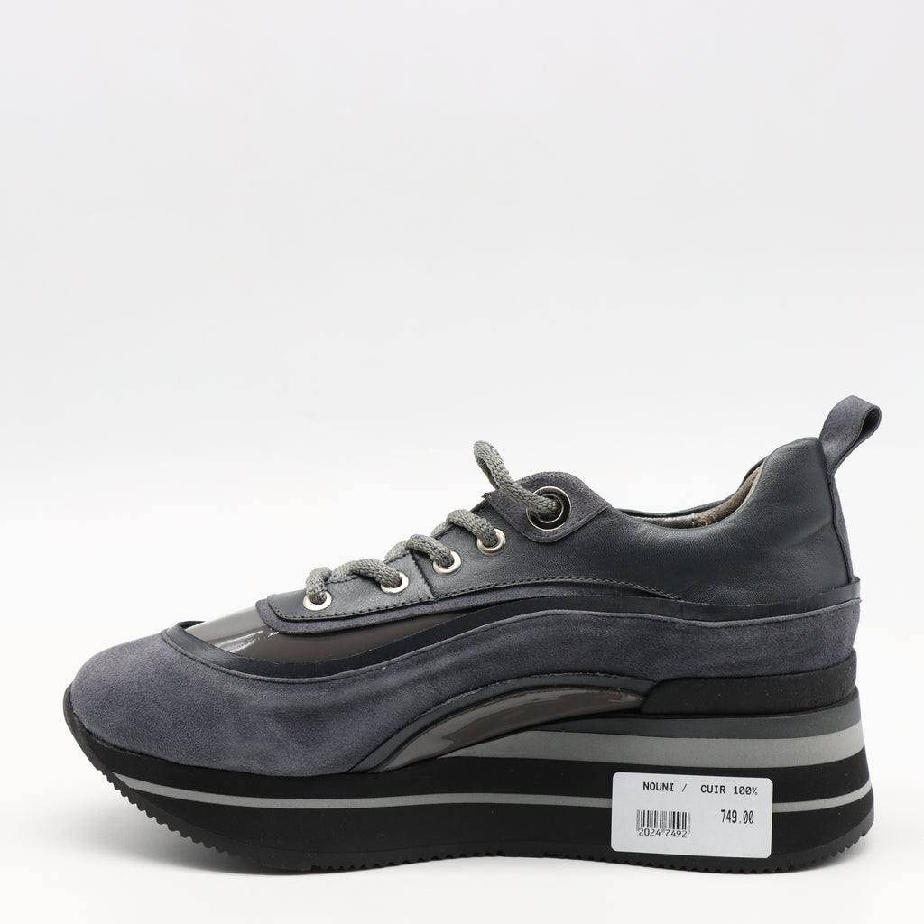BASKETS À LACETS EN CUIR ET SEMELLE COMPENSÉES