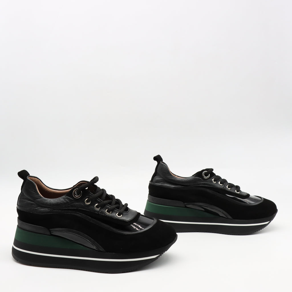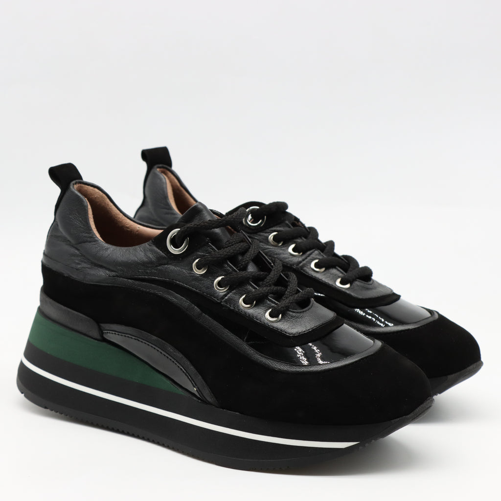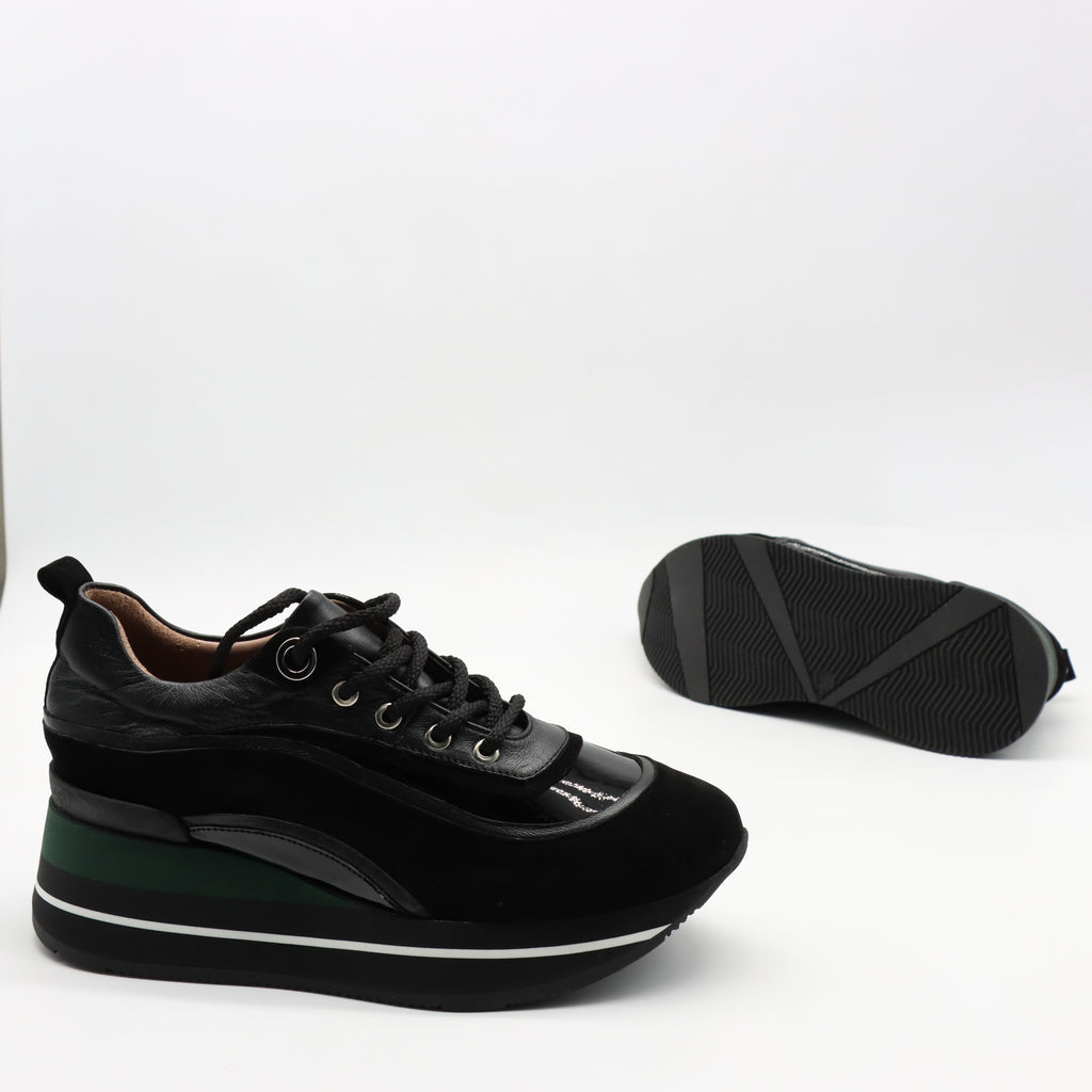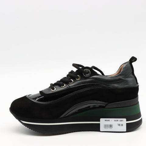 BASKETS À LACETS EN CUIR ET SEMELLE COMPENSÉES