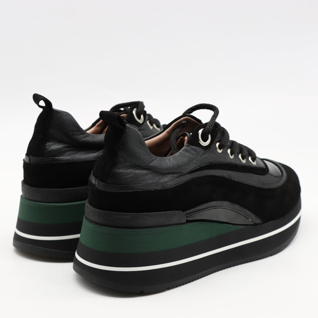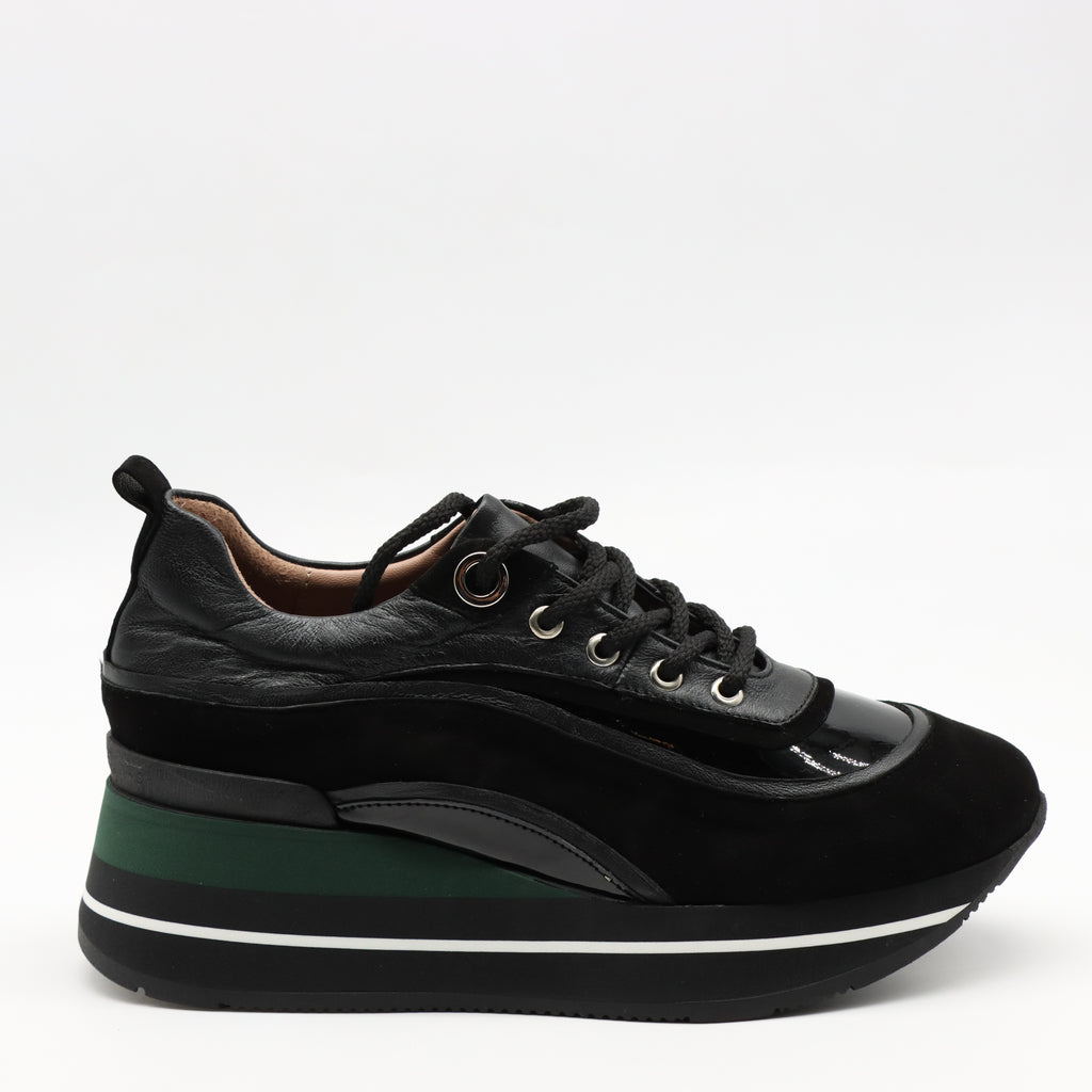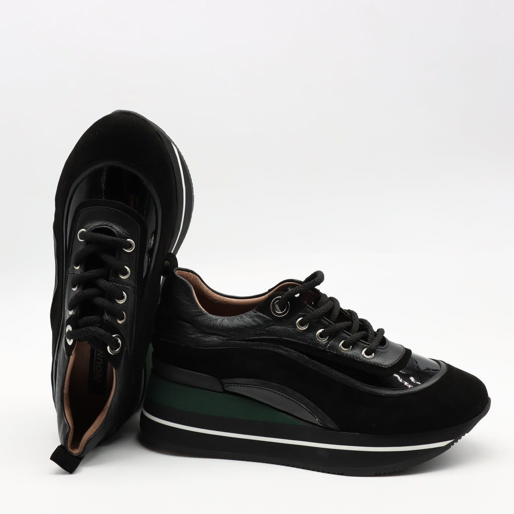 BASKETS À LACETS EN CUIR ET SEMELLE COMPENSÉES