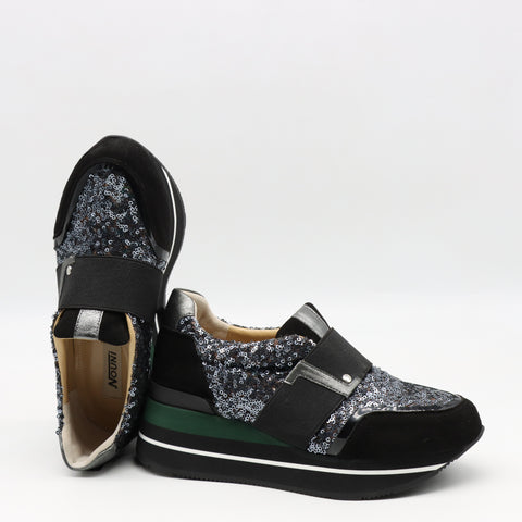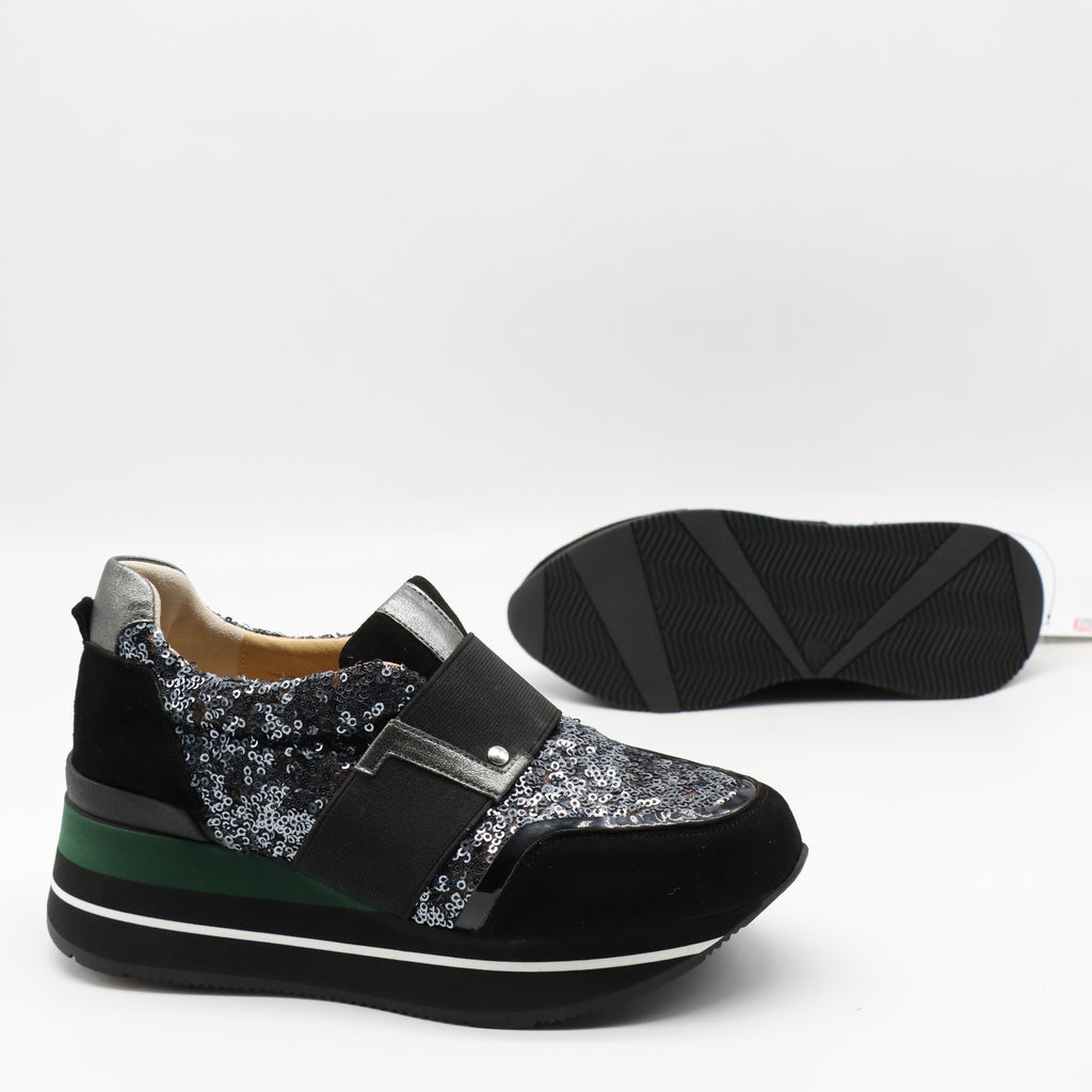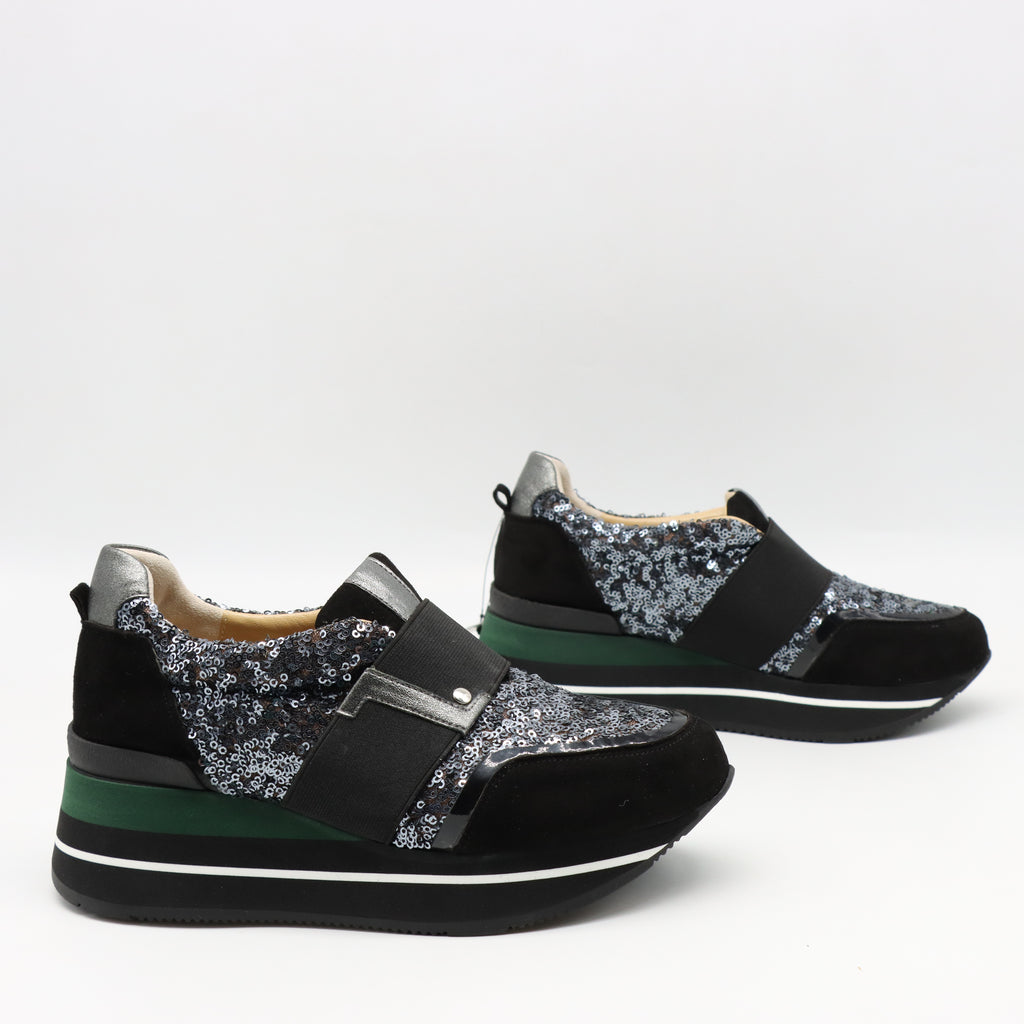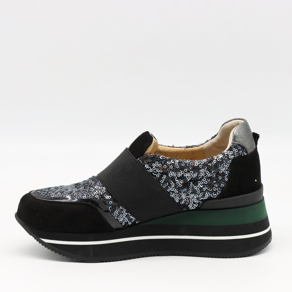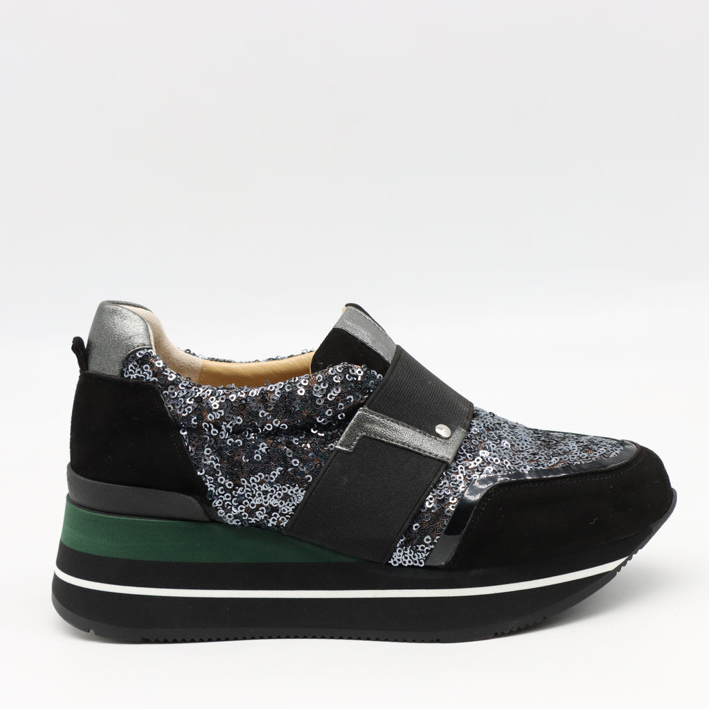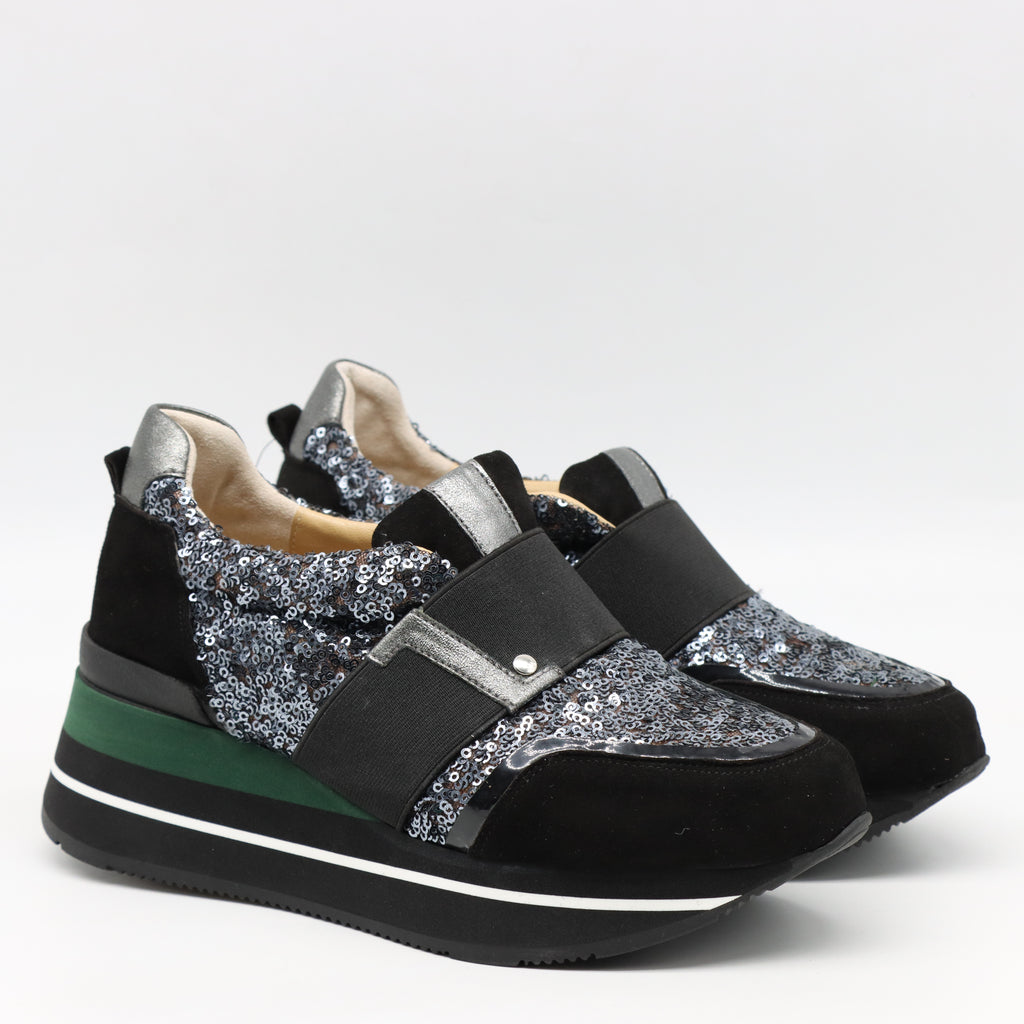 BASKETS COMPENSÉES EN CUIR À PAILLETES