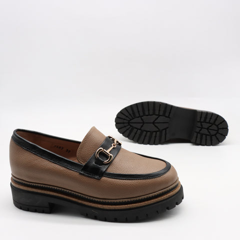 CHAUSSURES EN CUIR À MORS DORÉ ET SEMELLE CRANTÉE