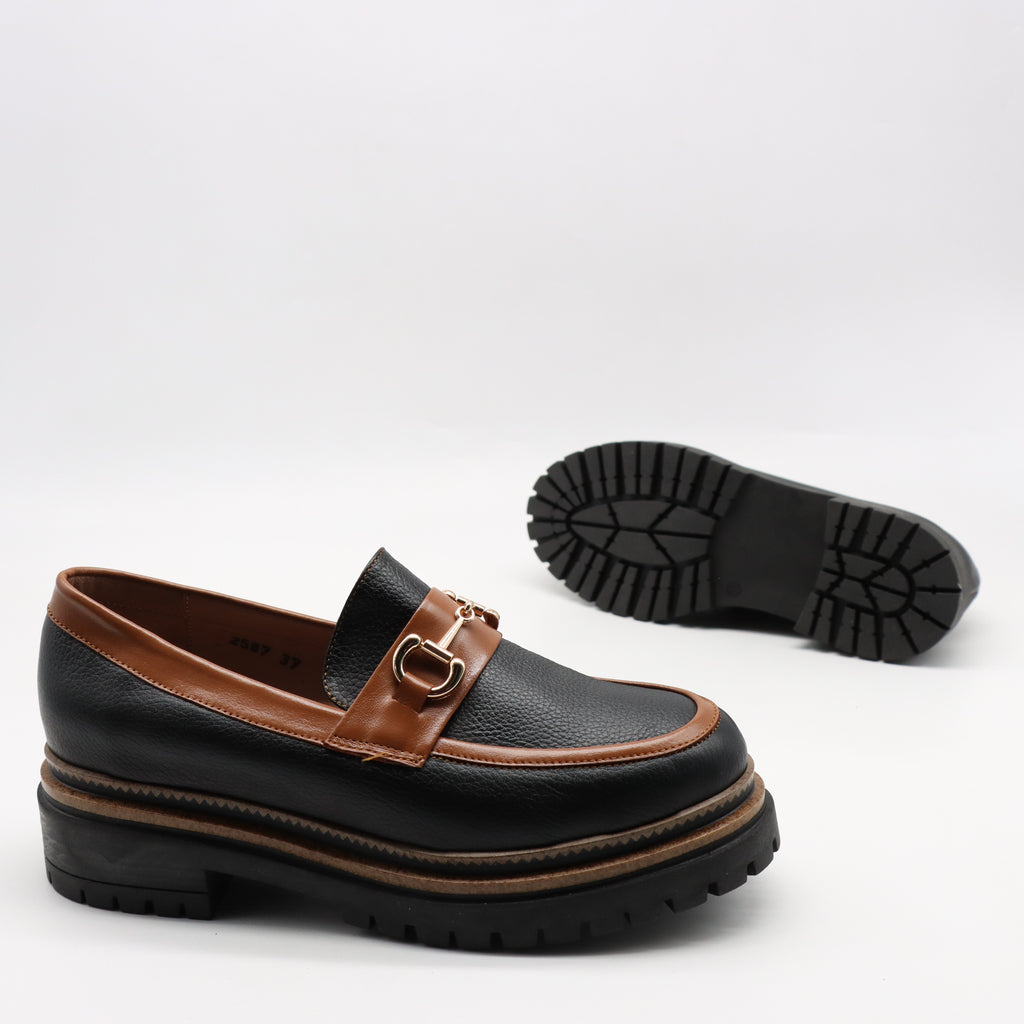 CHAUSSURES EN CUIR À MORS DORÉ ET SEMELLE CRANTÉE