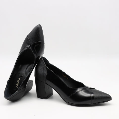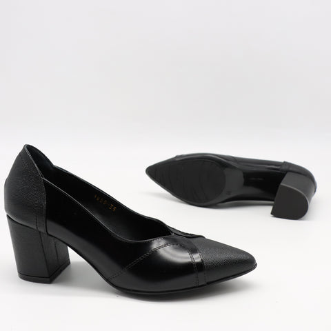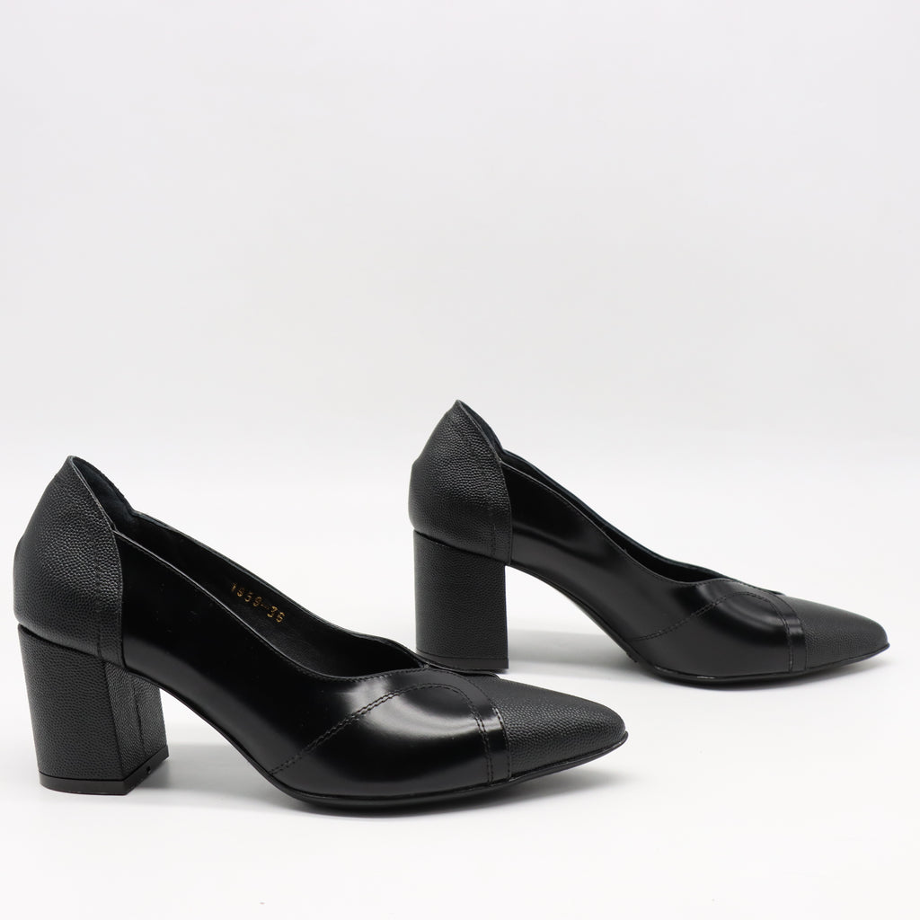 ESCARPINS À TALONS EN CUIR BI-MATIÈRE