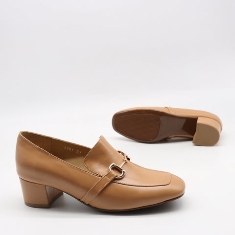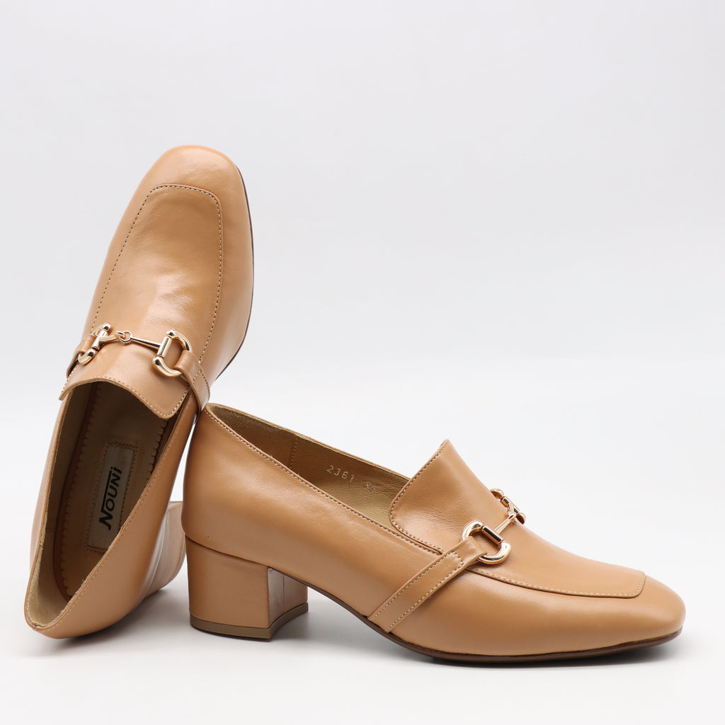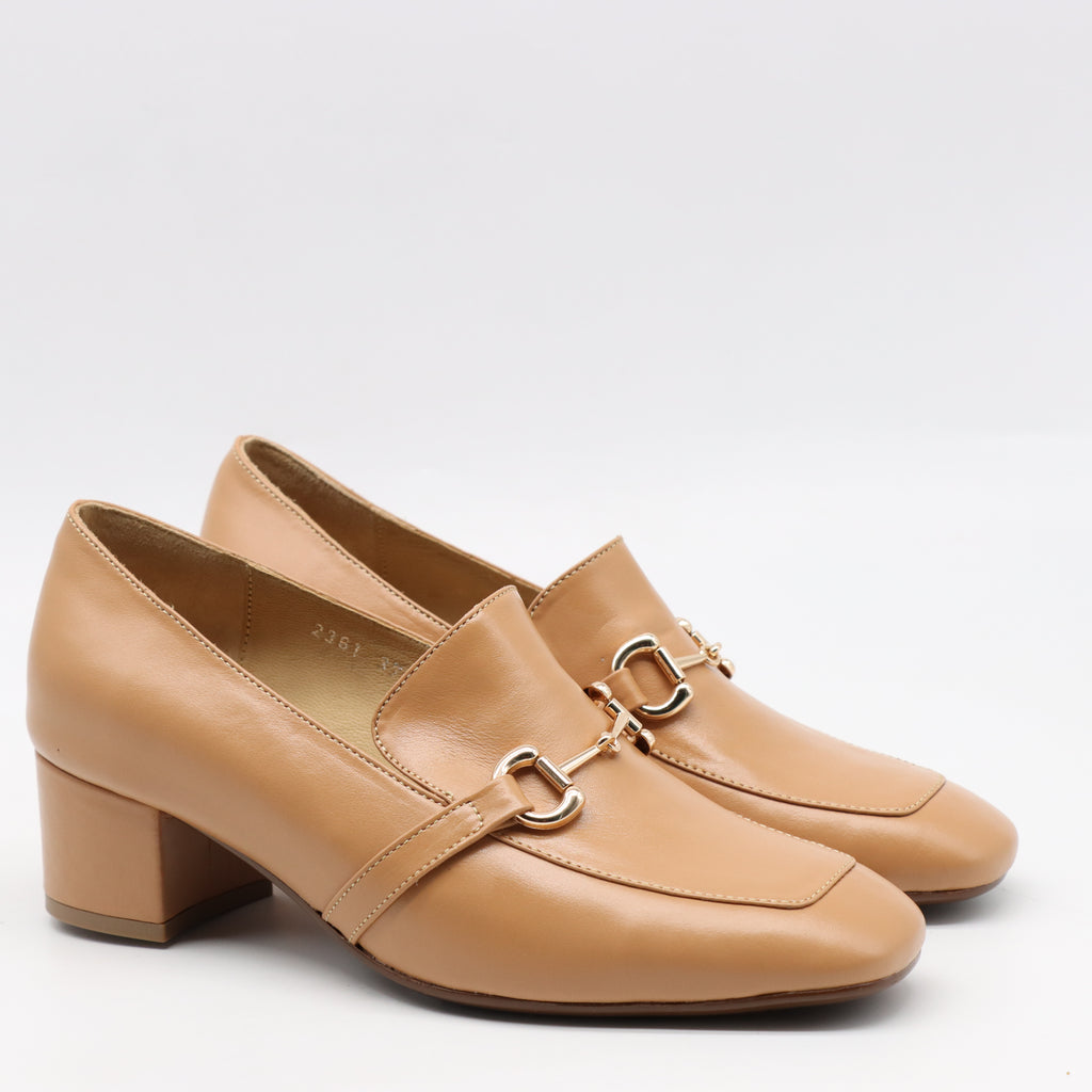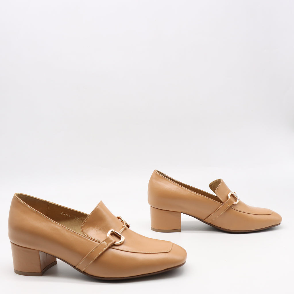ESCARPINS EN CUIR À BOUT CARRÉ ET MORS DORÉ