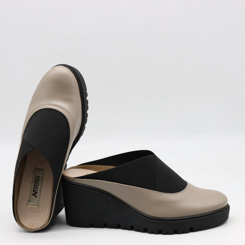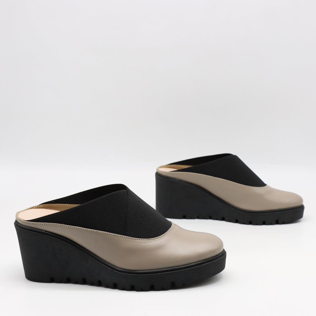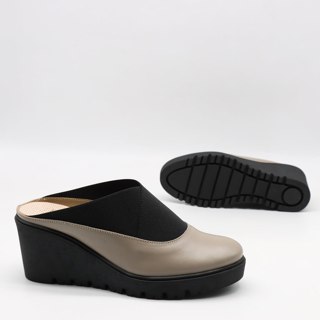 SABOTS COMPENSÉES EN CUIR À ÉLASTIQUES